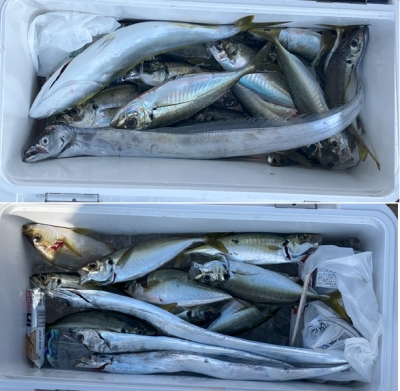タチウオの食い悪く、アジも釣りました。